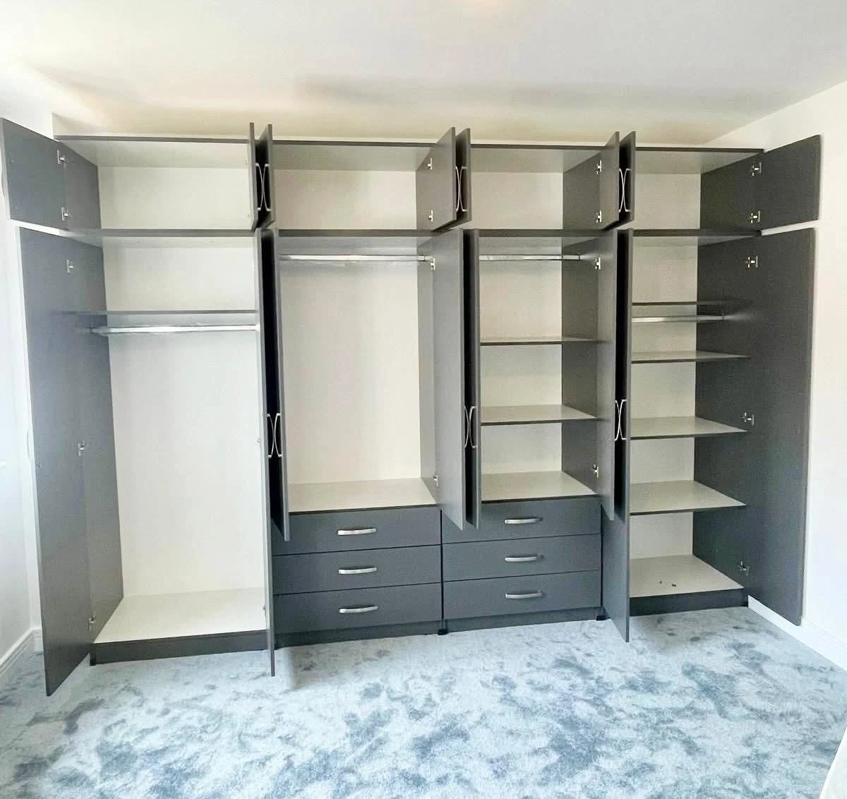 Transform your master bedroom with the ultimate storage solution. Our 8-door wardrobe is a premium piece of furniture designed for those who need maximum space without the stress of DIY assembly. This unit features four high-quality mirrors located on the central doors, adding light and a sense of depth to your room.