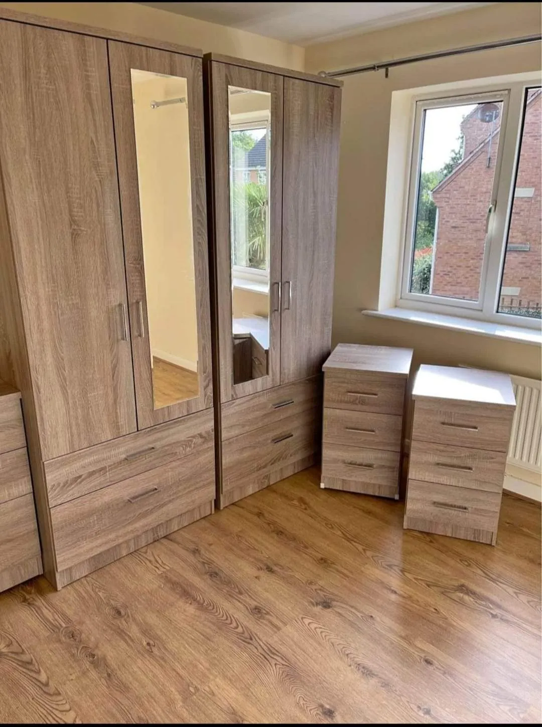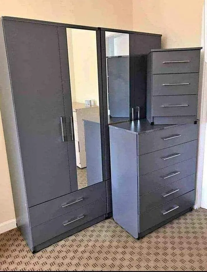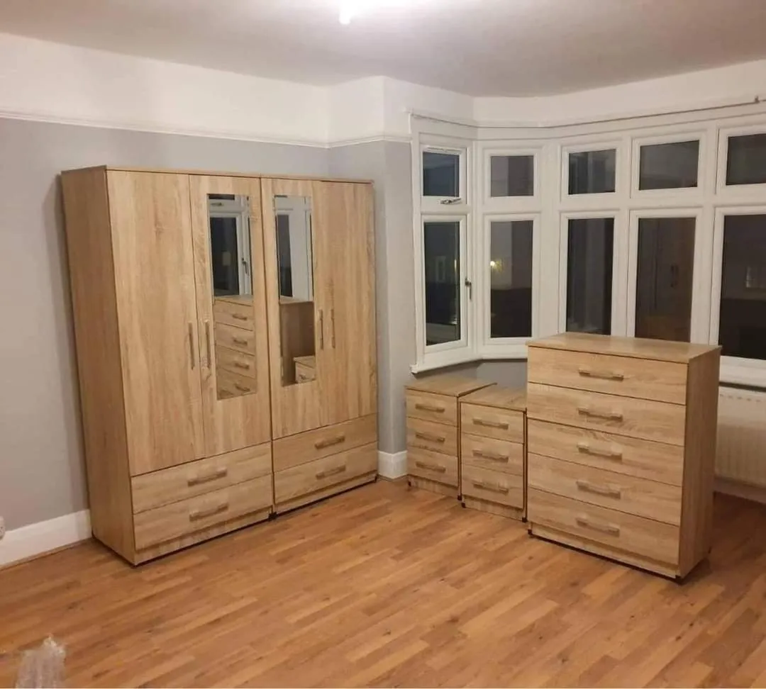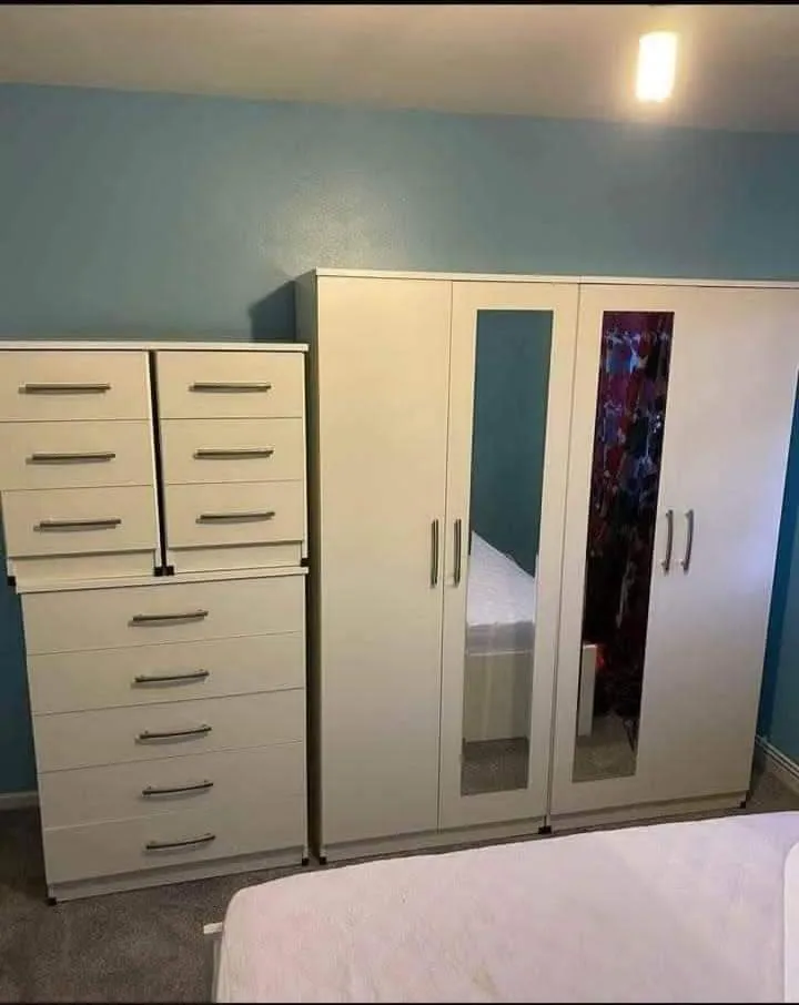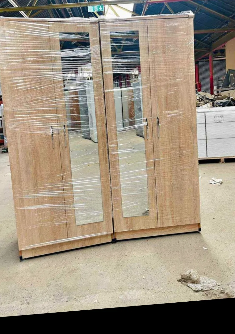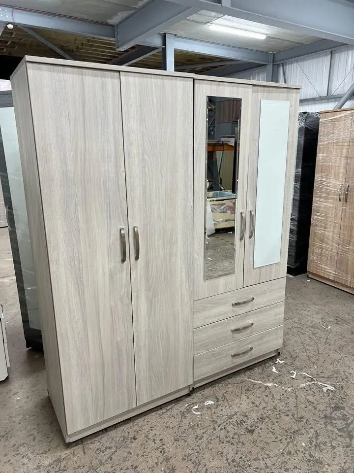 Fully assembled 4-door gents wardrobe with 2 mirrors. Hanging rail included. Cash on delivery.