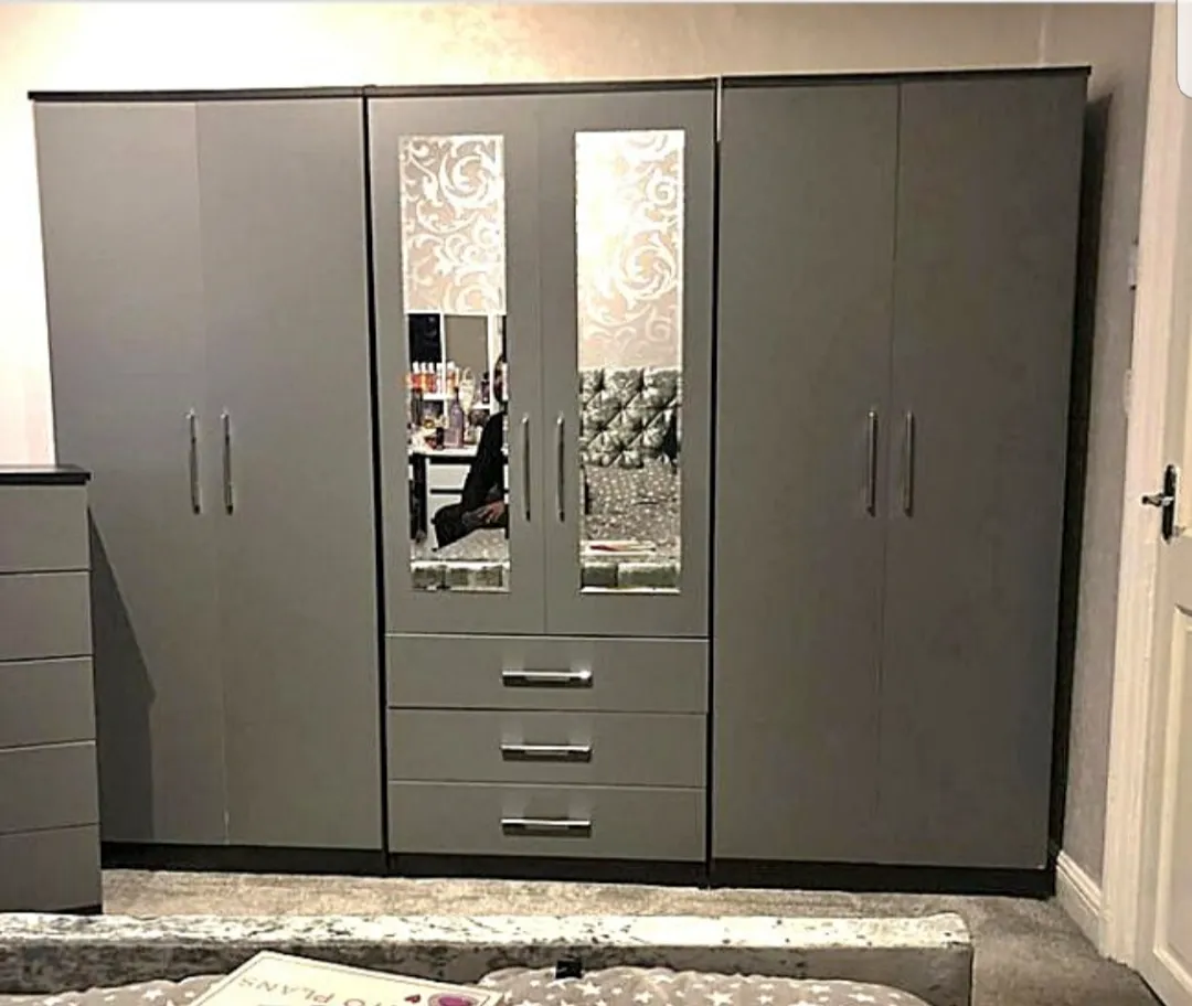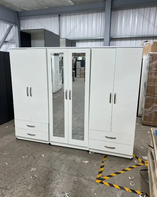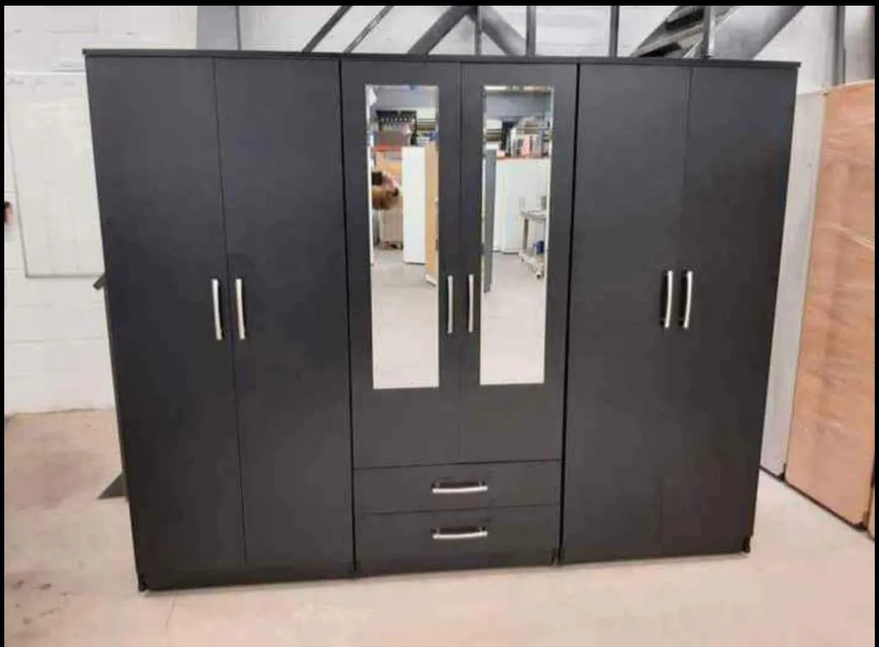 Fully assembled 6-door wardrobe with 2 mirrors. Multiple colours. Cash on delivery.