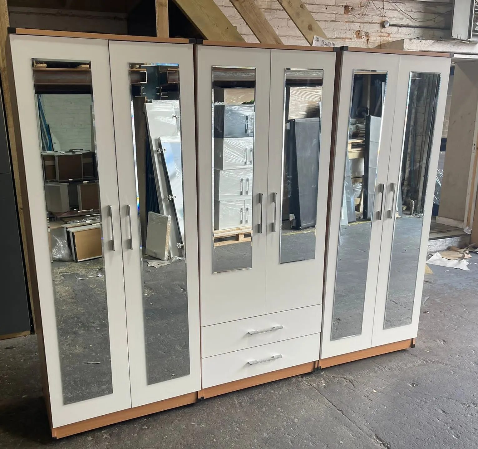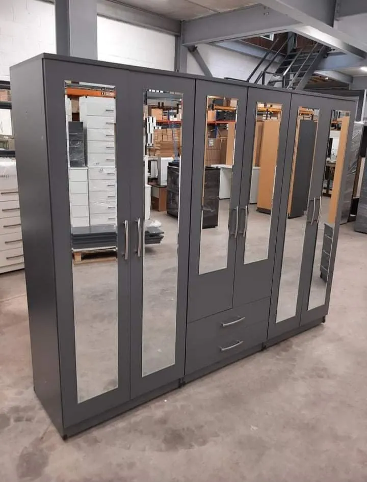 Fully assembled 6-door wardrobe with 6 mirrors. Multiple colours. Cash on delivery.