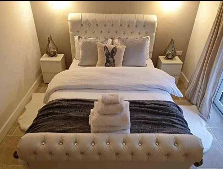Premium sleigh bed super king with memory sprung mattress. Fully assembled delivery. Cash on delivery.
