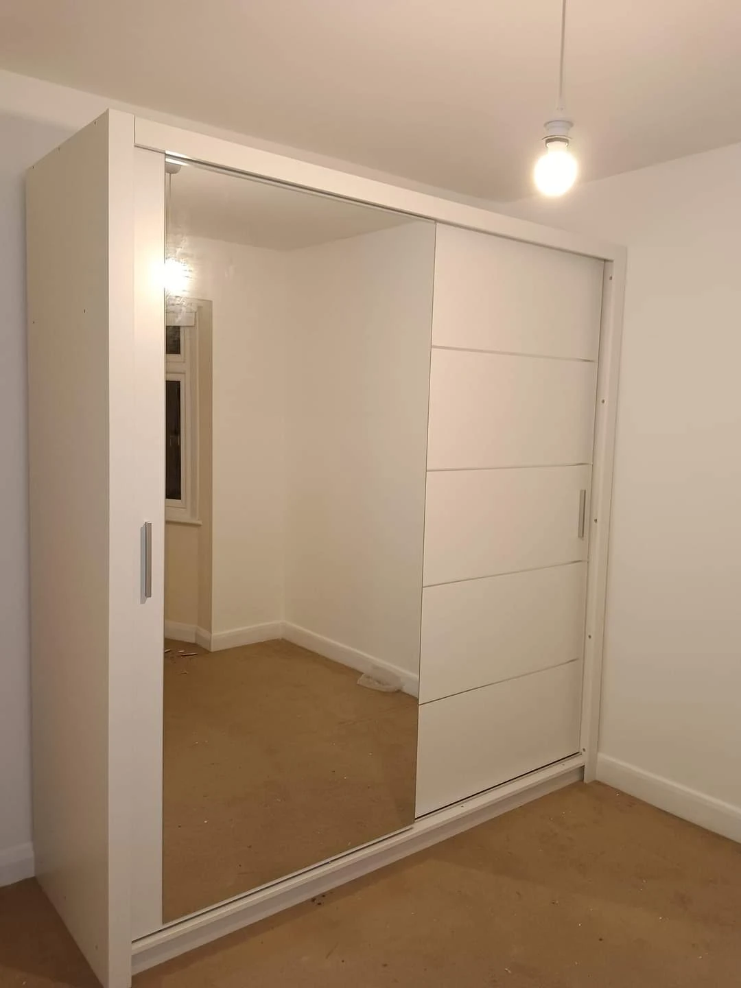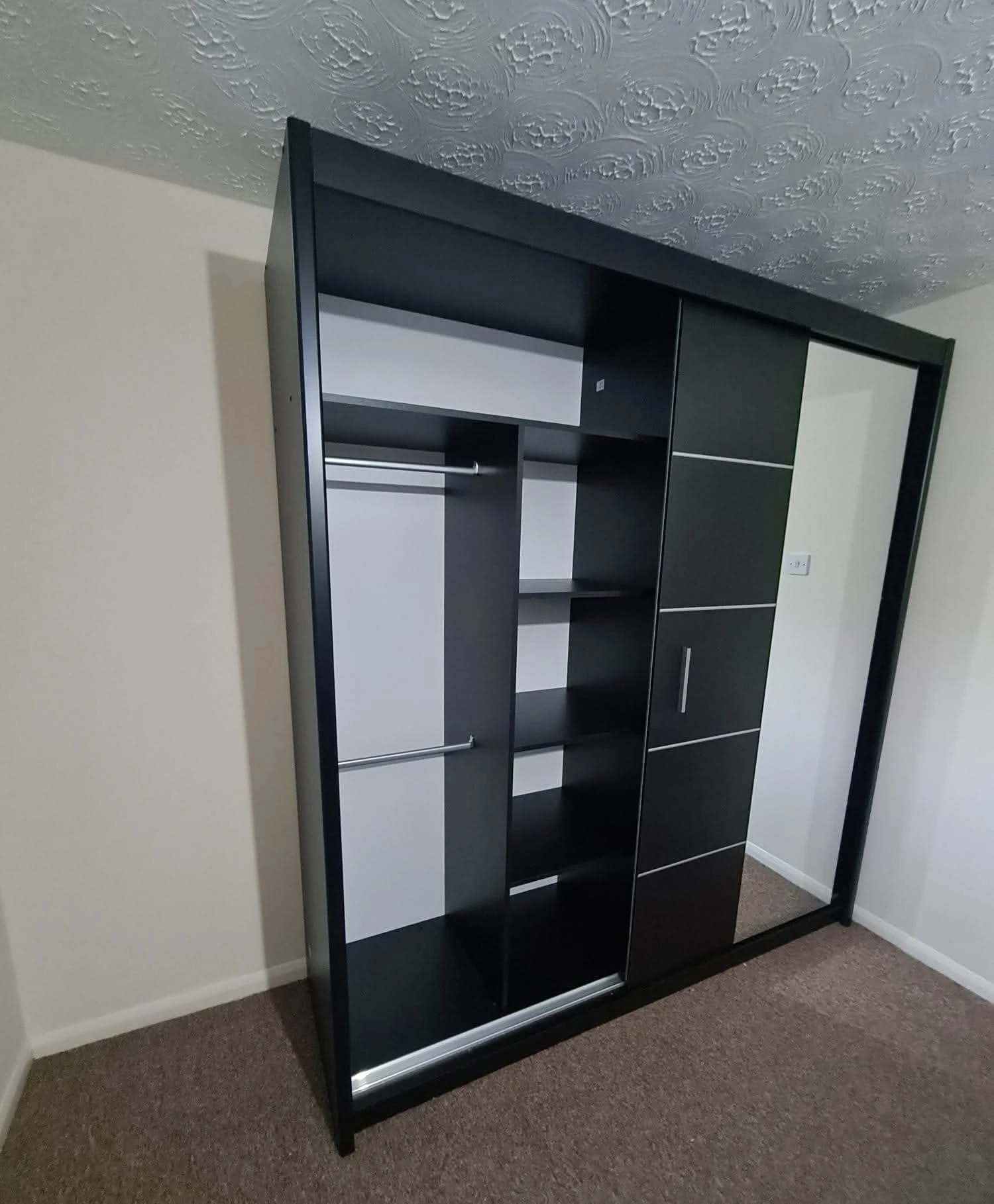 100cm premium MDF sliding wardrobe. Flat pack UK delivery. Fitting available £60 extra.