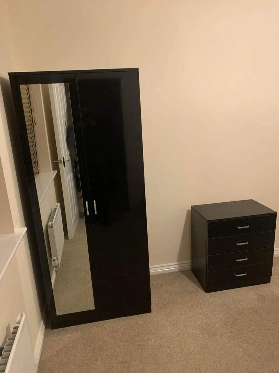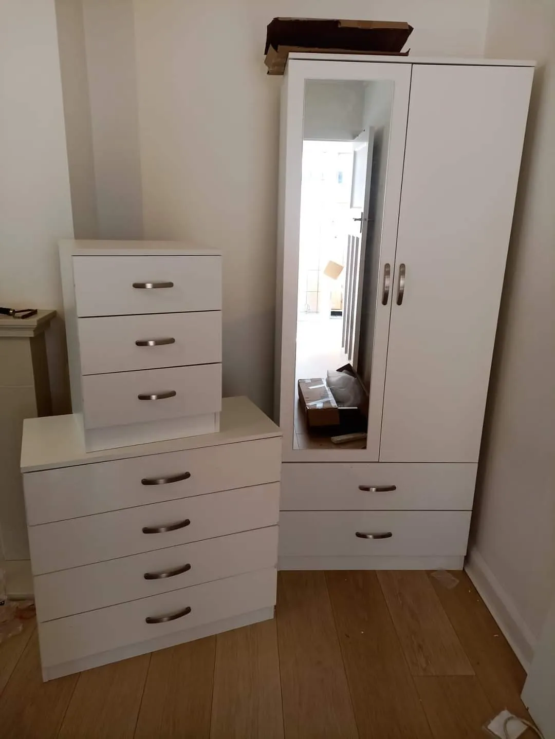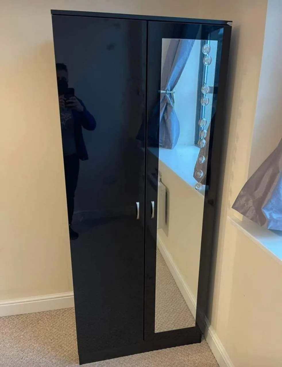 Fully assembled 2-door gents wardrobe with 2 mirrors. Hanging rail included. Cash on delivery.